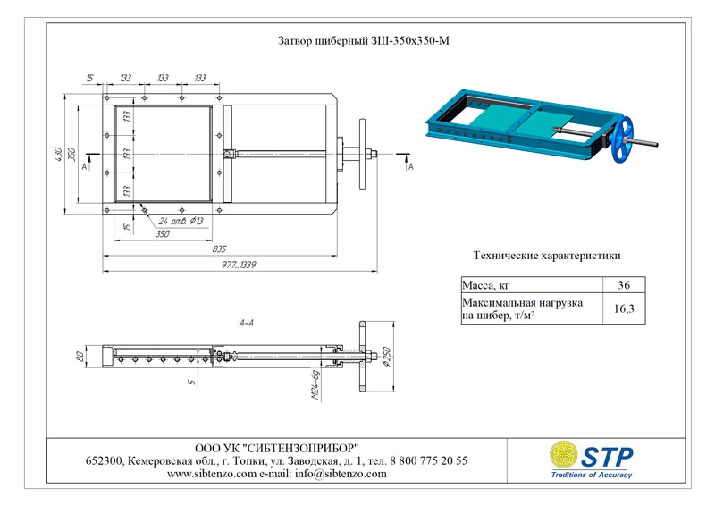 Купить затвор шиберный 3Ш-350х350-М из высокоуглеродистой стали вы можете в нашей компании «Сибтензоприбор»‎.