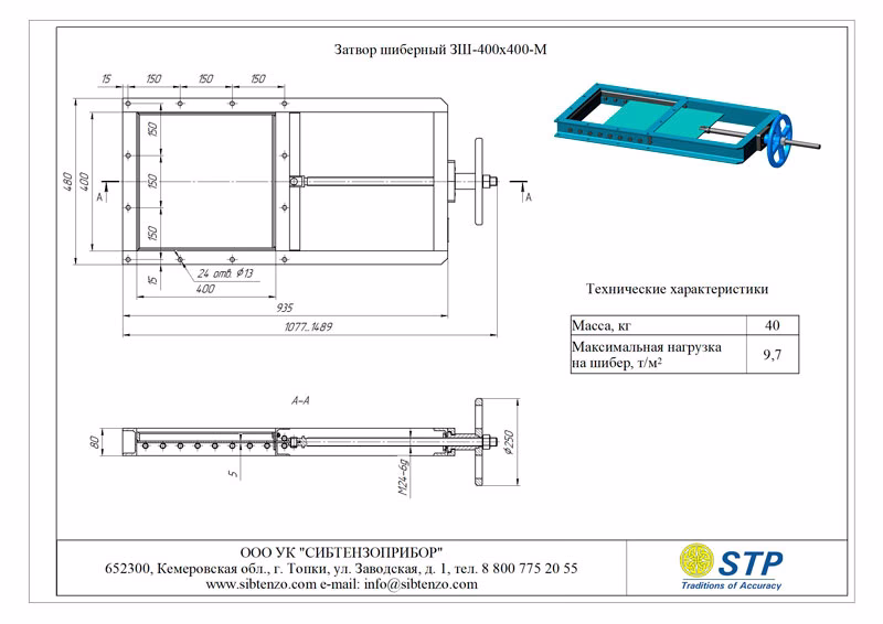 Затвор шиберный 3Ш-400х400-М из высокоуглеродистой стали вы можете в нашей компании «Сибтензоприбор»‎.